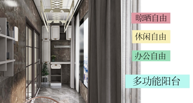 奇力,為你打造夢想陽臺! 小小的陽臺空間也能幫你實現(xiàn) 晾曬自由、休閑自由、辦公自由 瑜伽自由、親子自由……