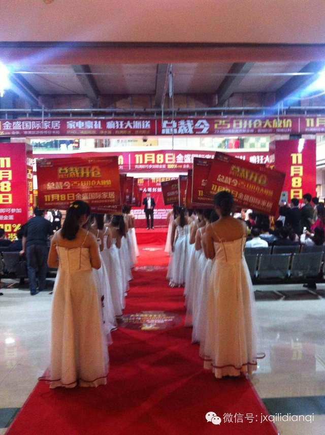 10月25日,金盛國際家居,遠遠看見兩列青春靚麗的迎賓小姐。更有數不勝數的金蛋陳列。而30位總裁也在60輛奔馳車隊的護送下,穿過揚州城區,抵達會場。