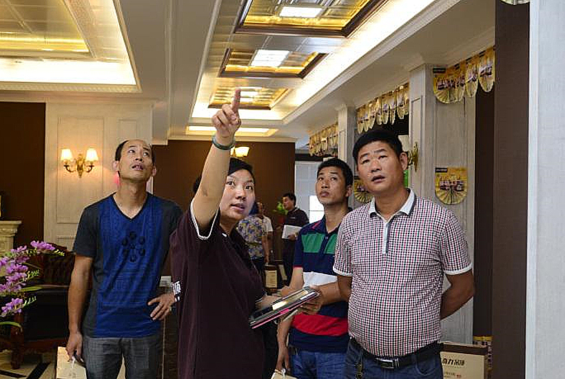 直供專車抵達奇力總部后,業(yè)主們就迫不及待得趕往公司展廳參觀。富麗堂皇的美式風尚展廳,高貴奢華、精致典雅。一進展廳,業(yè)主們的所有關(guān)注點便投射到產(chǎn)品上。他們紛紛掏出手機,親手記錄下奇力的精美產(chǎn)品與展廳。