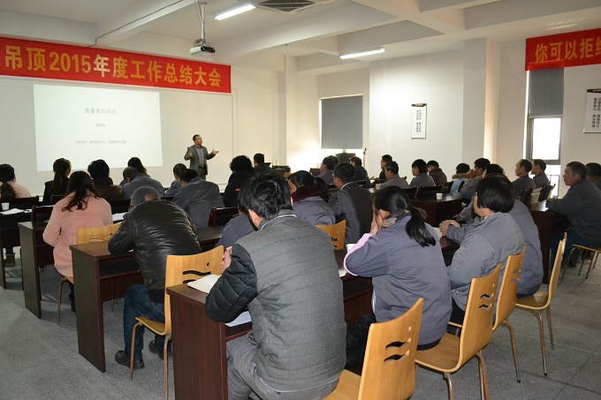 在洪總的熱情洋溢的主持下,質量主管王工聲情并茂的給員工講述了“質量是全員參與?!币粋€企業的質量是一切東西的基礎,沒有質量,談什么品牌、發展、競爭都是空話,尤其是對于我們吊頂行業來說,質量更是我們賴以生存和發展的基石。