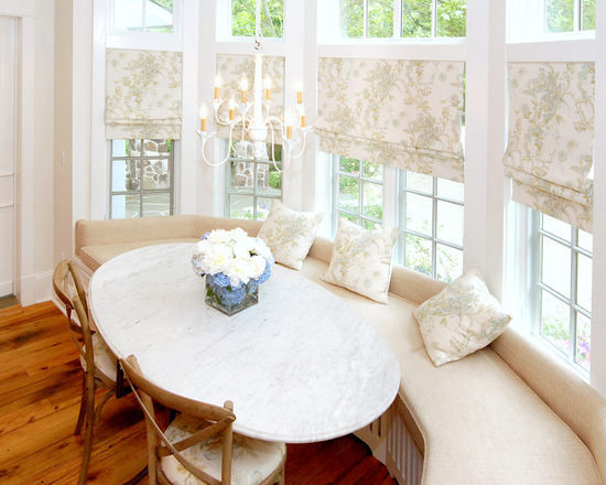 小編推薦:見慣了方正的設計,圓弧形的卡座似乎讓人耳目一新,清新的碎花窗簾搭配暖意洋洋的米色卡座沙發,家居的怡人清涼十足。