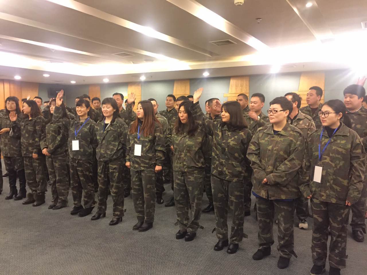 次日的軍訓,讓每個隊員都體會做教練的感覺。軍事化的訓練,站軍姿、轉體、跨立,重復這些簡單的訓練動作。風來了,我們英姿颯爽猶酣戰;雨來了,我們傲然挺立似雪松。喊著響亮的口號,邁著堅強與自信的步伐,洋溢著奇力核心經銷商青春的活力。下午,進行了一場盜夢空間游戲,充分鍛煉了大家的看圖理解、表達、溝通、傳達能力,同時也鍛煉了大家的團隊協作精神。