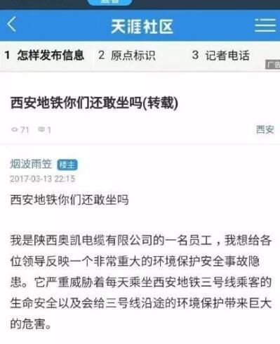 早前,一個自稱是某電纜公司員工的人發(fā)帖爆料,說西安地鐵3號線的電纜供應商提供了不合格的電纜。