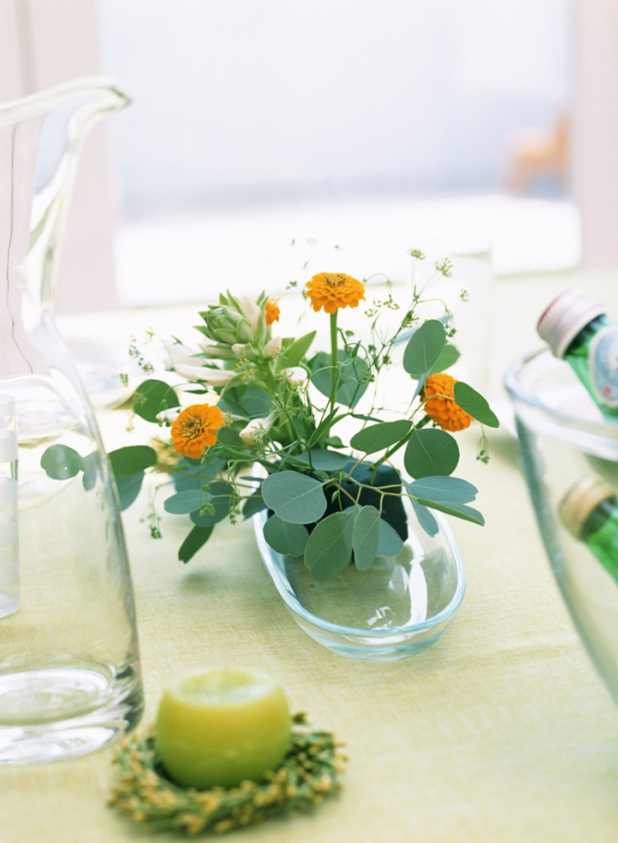 為了顯得更加小清新,可以把餐布、杯子、花瓶都換成綠色或白色。植物的花盆不要太厚重,盡量多用玻璃器皿,制造有風吹過的通透感。